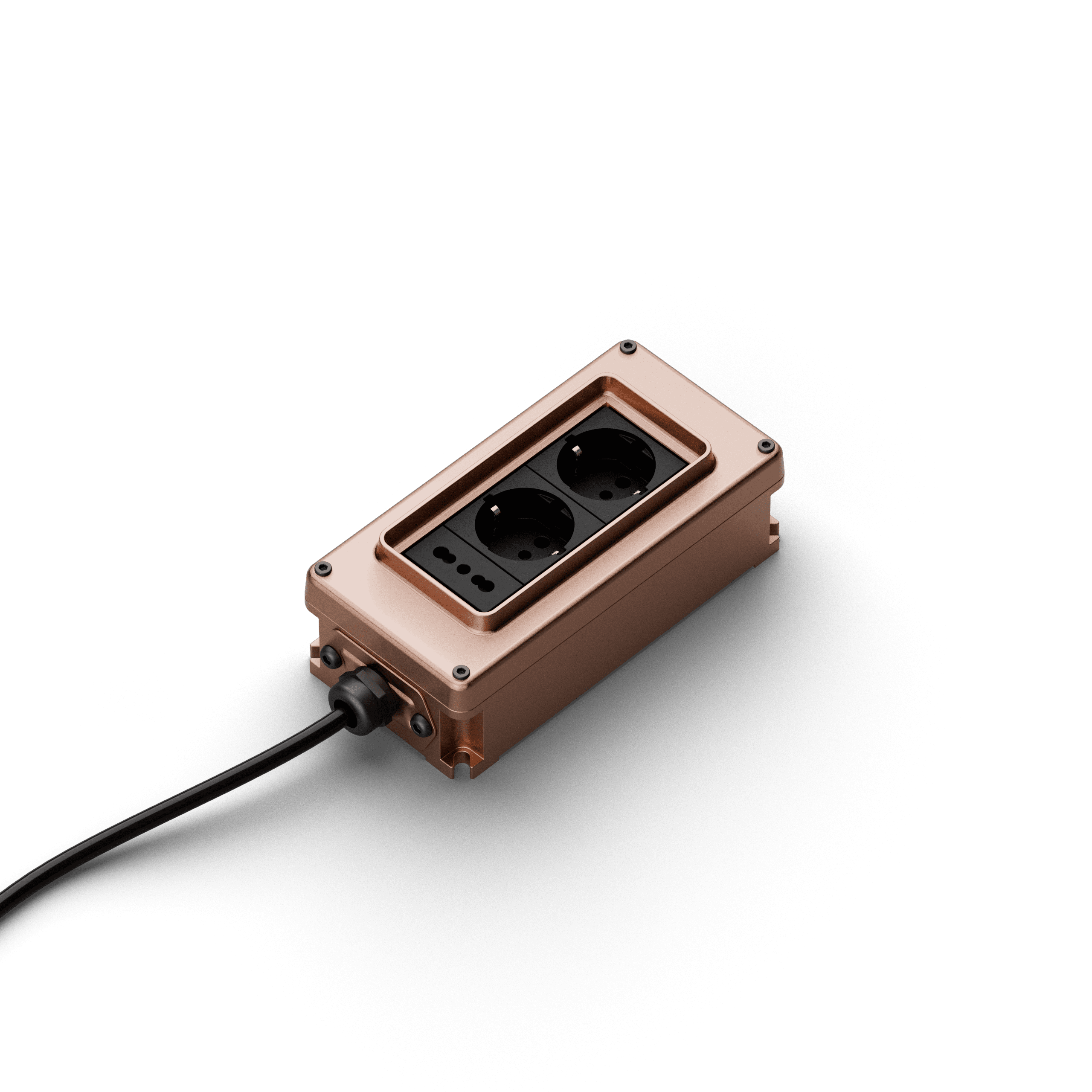 Il corpo della Box 5 Ciabatta in alluminio pressofuso, impreziosito dalle finiture Metal, come Graphite, Copper, Corten e Silver che esaltano la naturale texture del materiale, si abbina al sistema di impianto fuori traccia Genuit, consentendo grande libertà compositiva.
