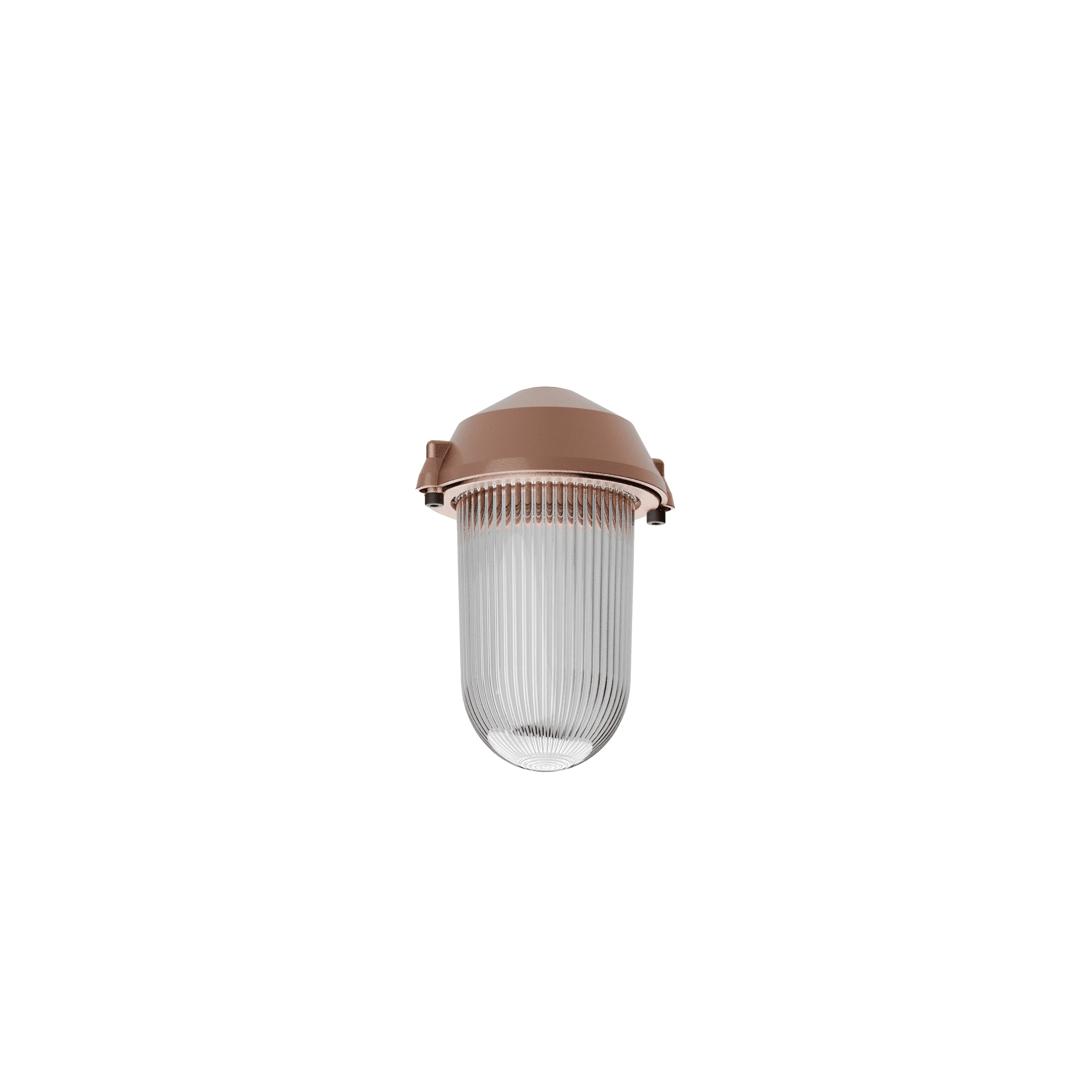 Il diffusore in vetro borosilicato rigato ad alto spessore dalla forma a cupola conferisce un aspetto elegante e rigoroso.